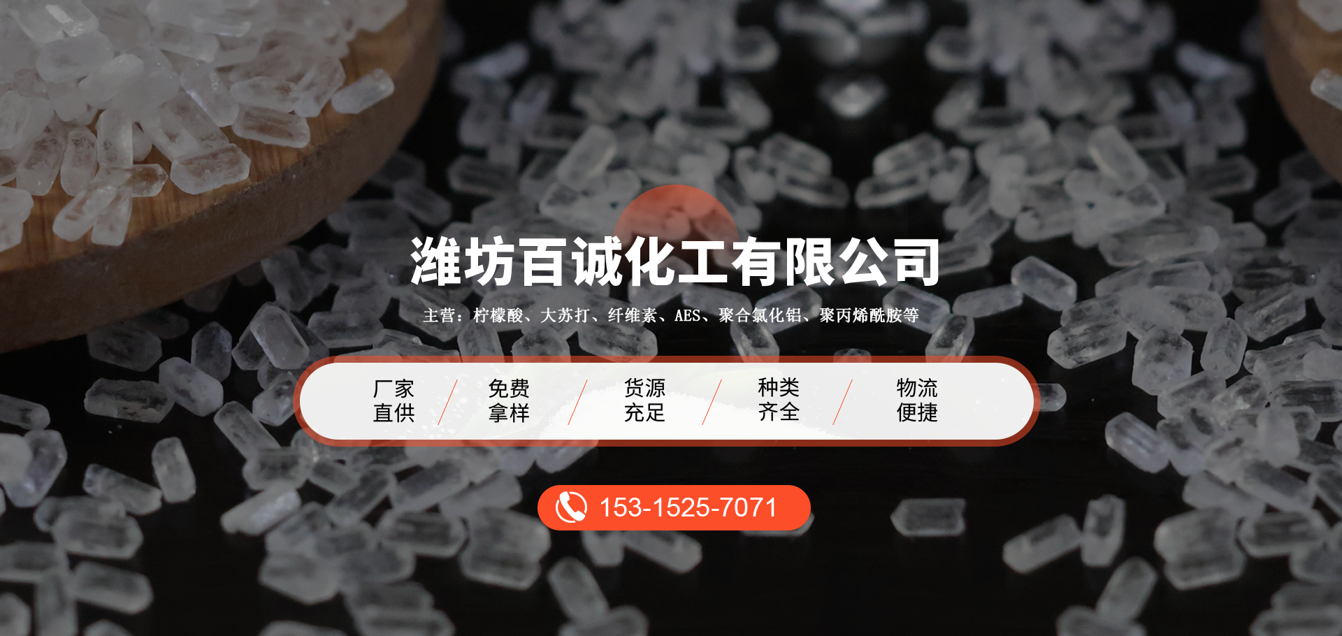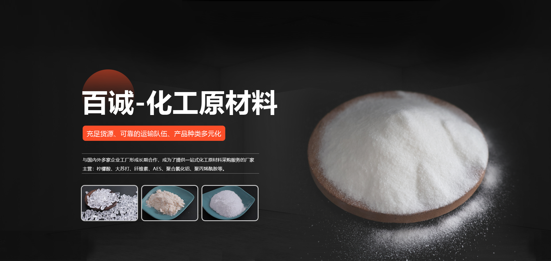 成立于山東的濰坊百誠(chéng)化工有限公司多年來與國(guó)內(nèi)外多家企業(yè)工廠 形成長(zhǎng)期合作,形成了競(jìng)爭(zhēng)力的化工原材料供應(yīng)、銷售和服務(wù) 渠道,主營(yíng):大蘇打、葡萄糖、檸檬酸、纖維素、消泡劑、AES等。